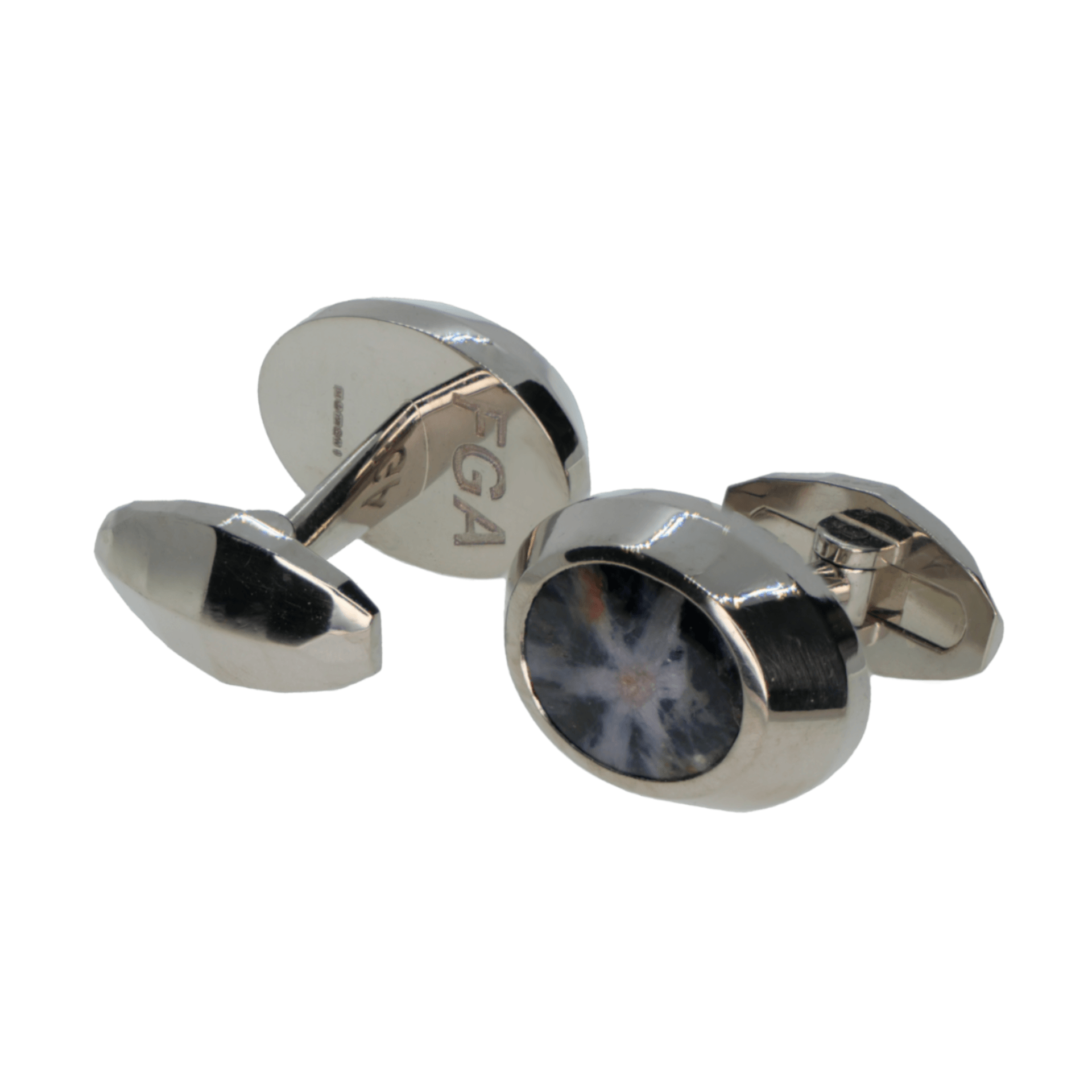 Trapiche sapphire set into 18ct white gold cufflinks