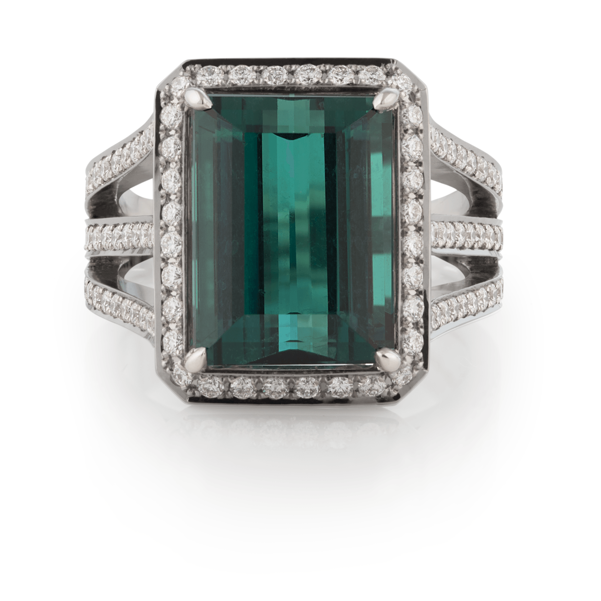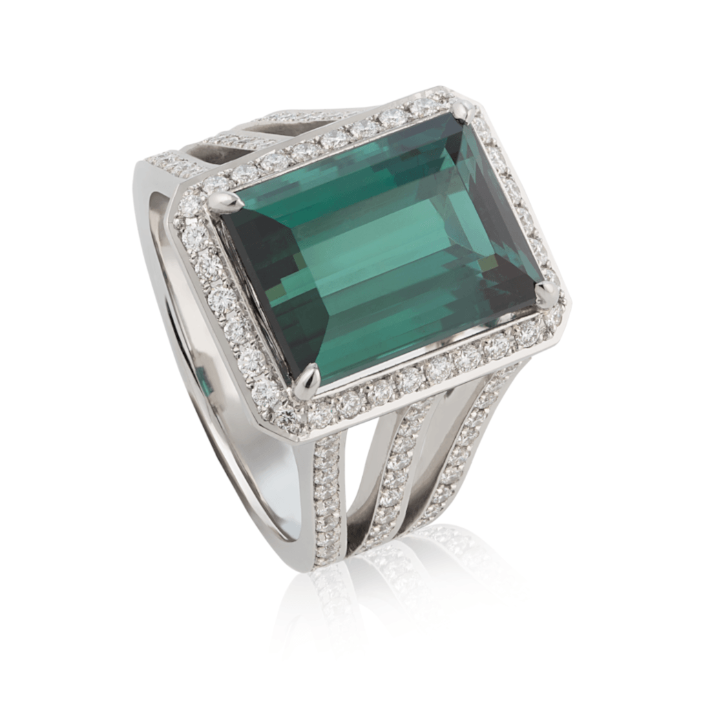 Green tourmaline with brilliant cut diamonds set in 18ct white gold