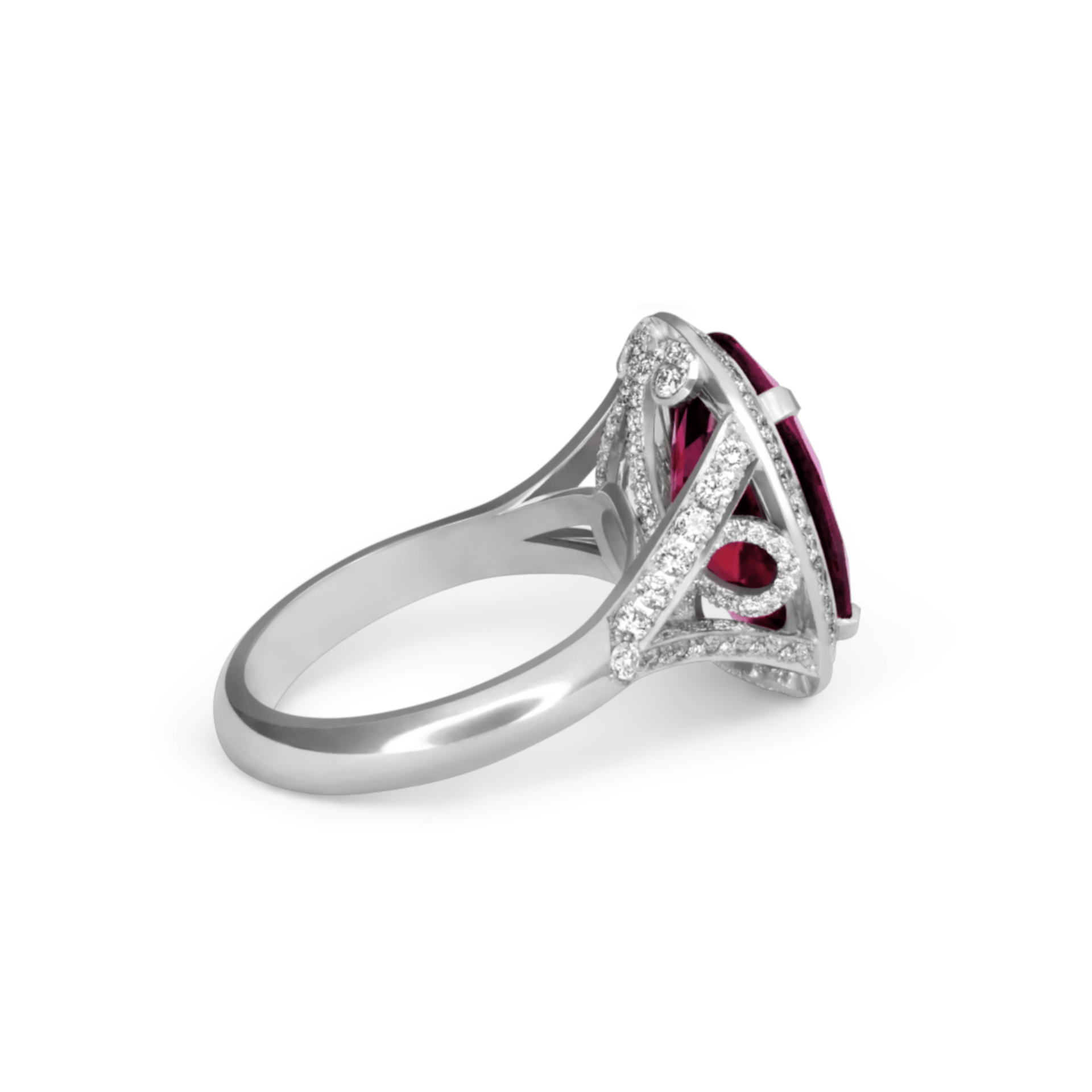 Featuring stunning diamond set basket behind the fine pink tourmaline