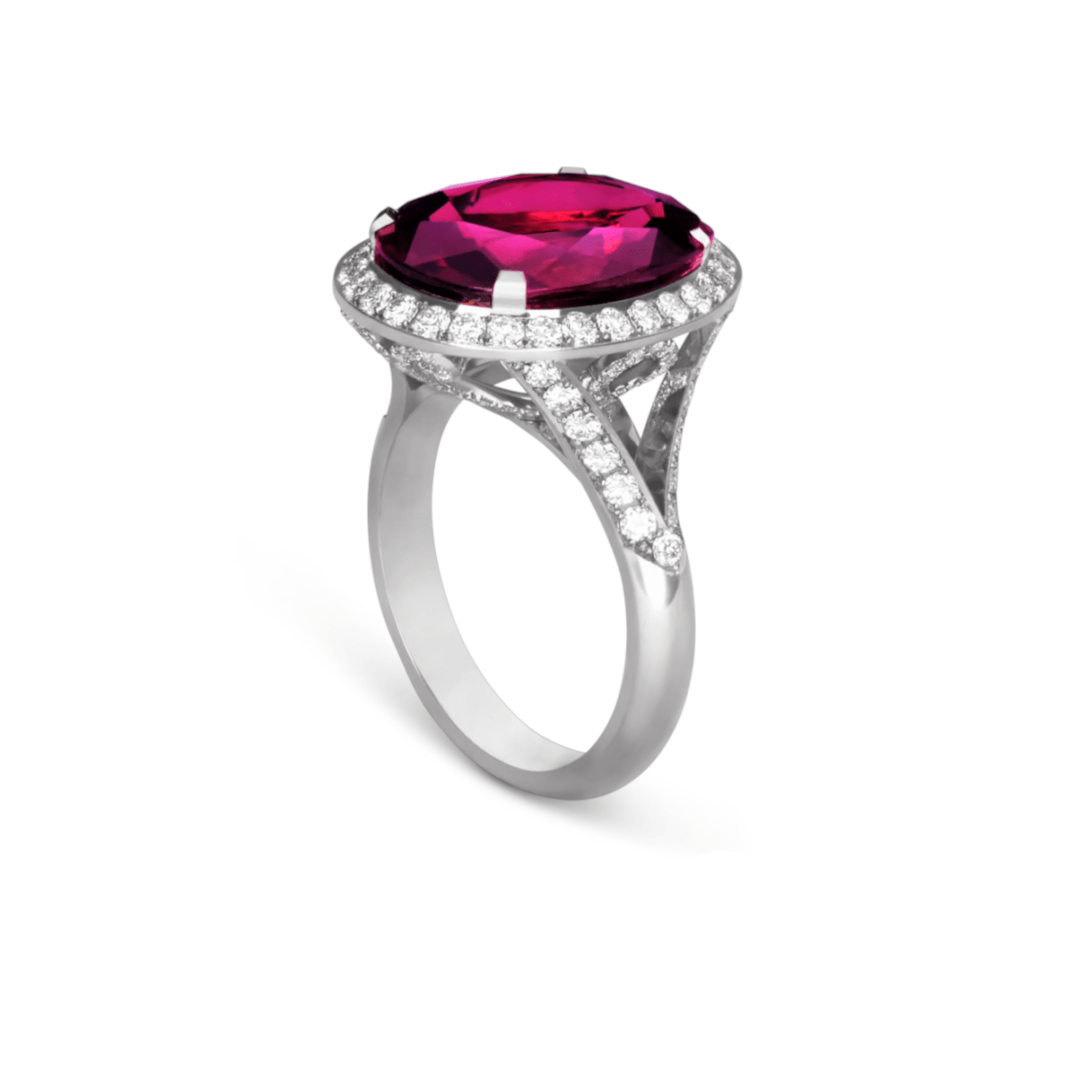 Pink tourmaline ring with brilliant cut diamonds set in 18ct white gold