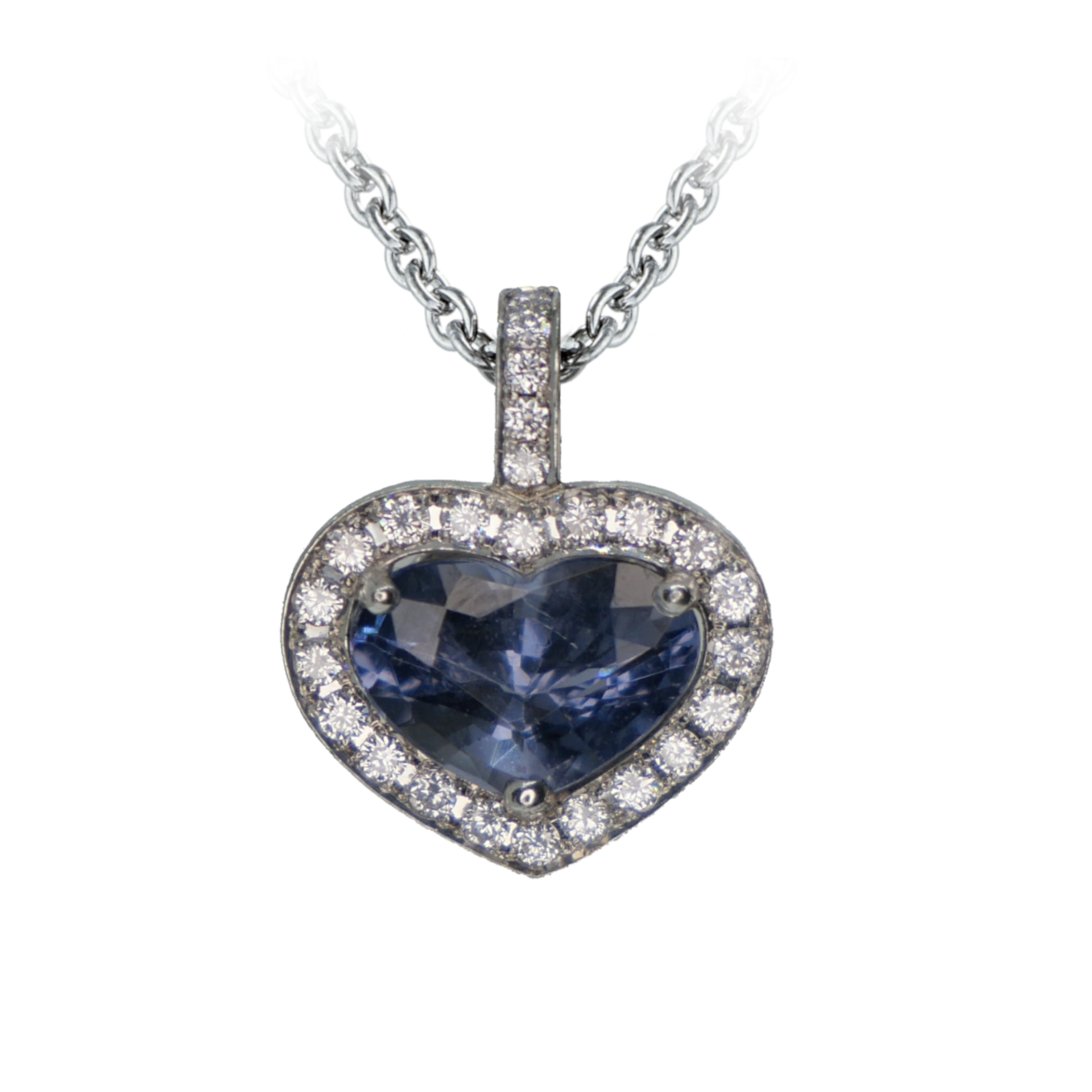 Blue spinel heart with brilliant cut diamonds set in 18ct white gold